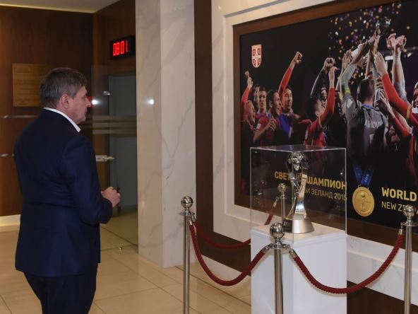 Pre nego što će napustiti prostorije Sportskog centra u Staroj Pazovi, Dragan Stojković je zastao pored fotografije u hodniku i zadržao pogled na šampionima sveta iz 2015. godine.