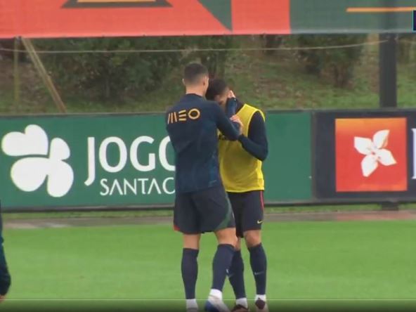 Haos se nastavio i na treningu! Nakon snimka iz svlačionice Portugala, kada se Bruno Fernandeš jedva pozdravio sa klupskim drugom Kristijanom Ronaldom, loša atmosfera se prenela i na terene trening centra u Portugalu. Reprezentacija te zemlje dočekuje selekciju Nigerije u poslednjem pripremnom meču za Mundijal 17. novembra u 19.45. Podsećamo da je Kristijano Ronaldo, pre dva dana šokirao sve kada je sav "prljav veš" iz Mančester Junajteda izneo u javnost.