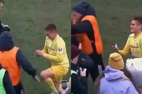 Beloruski fudbaler Vladislav Šubovič pokušao je da zaprosi devojku tokom utakmice, ali je jedan ljutiti radnik obezbeđenja prišao i upropastio sve. On nije shvatio šta se događa, pa je odgurnuo zbunjenu devojku, što je i te kako naljutilo igrača. Odmah je skočio da se obračuna sa čovekom u markeru, a video-snimak ove scene postao je hit na društvenim mrežama:
