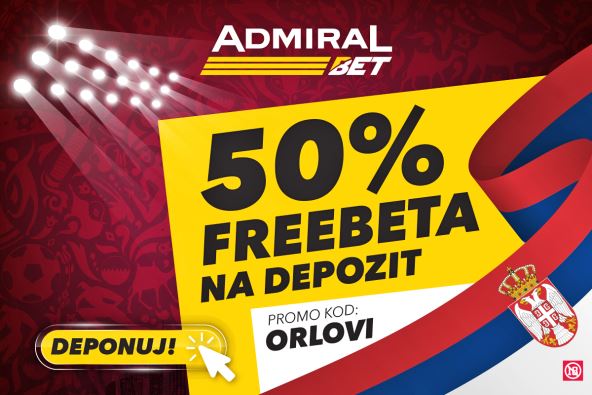 Dakle, danas u toku dana, na vaš prvi onlajn depozit od minimalno 1000 dinara u AdmiralBet-u, dobićete 50% freebet-a, uz promo kod ORLOVI.
