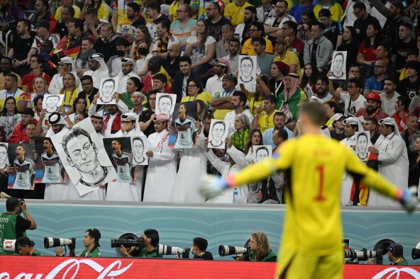 U toku utakmice Nemačka - Španija, arapski navijači išli su po stadionu "Al Bajt" sa odštampanim likom Mesuta Ozila, bivšeg reprezentativca Nemačke. Oni su stavili ruke na usta, aludiravši tako na potez reprezentativaca Nemačke koji su pred prvi meč u Kataru napravili isti gest, ukazujući tako na kršenje ljudskih prava, loš tretman pripadnika LGBT zajednice i zabranu izražavanja i slobode govora u zemlji domaćinu Mundijala.