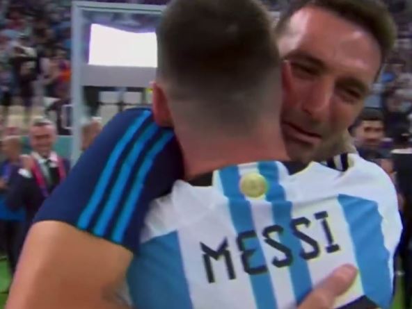 Snimci sa samog terena pokazuju da je zaplakao čak i selektor Lionel Skaloni! Nekadašnji reprezentativac koji je sada uspeo da odvede Argentince do finala Mundijala kao selektor nacionalnog tima prvo se pozdravio sa najboljim igračem svoje ekipe, a zatim pustio suzu. U kadru se to jasno vidi, a tu je i detalj kada rukavom pokušava da obriše lice! Pogledajte: