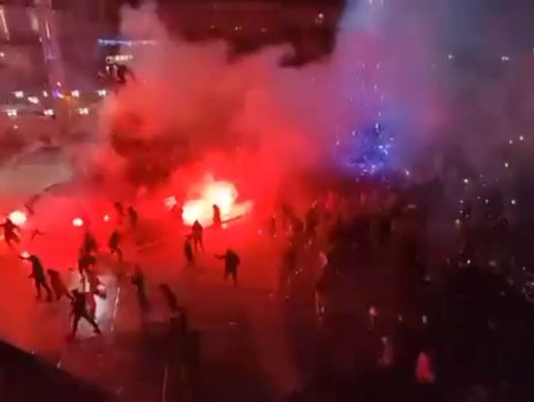 Snimci prikazuju ogromne grupe navijača kako se sukobljavaju, čuju se konstantne eksplozije, a uz to se vidi veliki broj upaljenih baklji koje navijači bacaju jednu na druge. Pogledajte kako je izgledalo na ulicama Monpeljea: