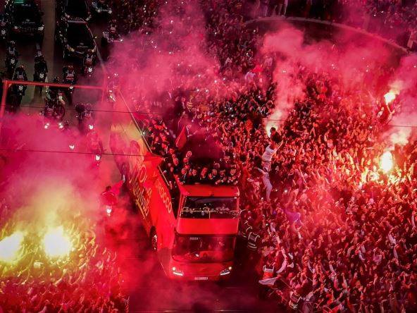 Na ulicama Rabata stotine hiljada ljudi su dočekale svoje heroje, a autobus na kome su igrači bili prolazio je kroz masu. Videlo se mnogo upaljenih crvenih baklju u bojama marokanske zastave, mnogo pesme i veselja. Pogledajte: