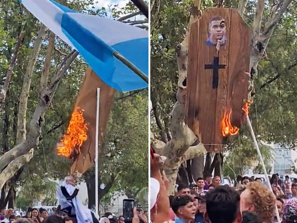 Sada su iz Argentine procurili i šokantni snimci na kojima se vidi da su navijači u Buenos Ajresu prvo napravili mrtvački kovčeg, a onda na njega zalepili sliku Mbapea. Na kraju su sve to zapalili tokom proslave, pogledajte i kako: