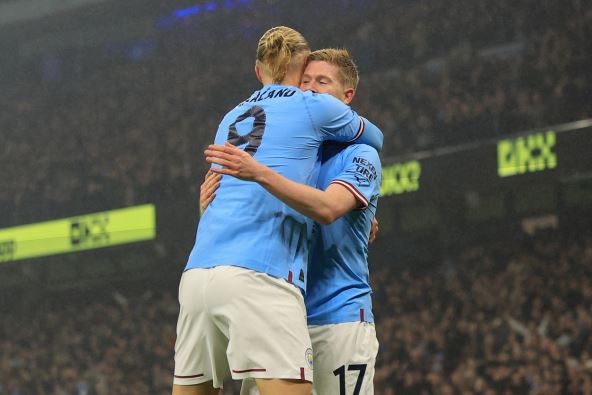 Holand je pogodio u 10. minutu na dodavanje De Brujnea, da bi u 20. minutu Fabio Karvaljo izjednačio. Sa tim rezultatom otišlo se na pauzu. Po povratku na teren Klop je napravoi dve promene, uveo je Fabinja i Aleksa Okslejda-Čembrlena, a izašli su Karvaljo i igrač srpskog porekla Stefan Bajčetić. Samo što je meč nastavljen, Rijad Marez je pogodio u 47. minutu. Već u sledećem napadu Salah je pogodio za 2:2 posle dodavanja Darvina Nunjeza. Onda je u 58. minutu De Brujne poslao savršeno dodavanje na drugu stativu, a Nejtan Ake glavom pogodio. Mogli su "crveni" do izjednačenja preko Nunjeza, ali je on promašio dve odlične prilike. Bilo je koškanja, guranja, svađa na terenu, ali ne i promene rezultata do kraja meča.