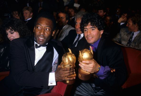 Sa druge strane, Dijego Maradona je 1986. čudesno vodio Argentinu do naslova prvaka sveta, četiri godine kasnije je ponovo doveo ekipu do finala u Italiji, a 1994. je diskvalifikovan sa Mundijala zbog dopinga, iako je nastupio u grupnoj fazi. Sa Peleom je imao odnos koji je bio prožet približavanjima i udaljavanjima, ali je veliko poštovanje ostalo do poslednjih dana obojice.