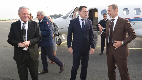 Predsednik UEFA Aleksandar Čeferin doputovao je u Srbiju i ovog puta posetio prostorije Fudbalskog saveza Srbije u centru Beograda. On je priznao da uživa svaki put kada dođe u našu zemlju, gde je prvi put bio u domu Saveza na Terazijama 35.