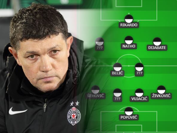 Očekivani sastav Partizana: Popović - Šehović, Marković, Vujačić, Živković - Belić, Fejsa - Menig, Natho, Dijabate - Gomeš.