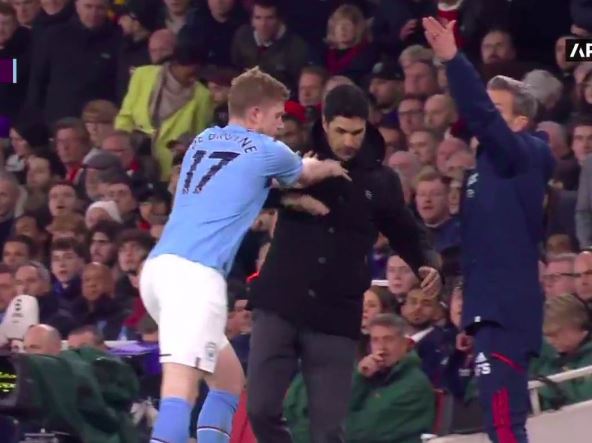Početkom drugog poluvremena Mikel Arteta i Kevin de Brujne su ušli u sukob, a sve pošto je menadžer Arsenala pokušao da "ukrade vreme" svom timu tako što je šutnuo loptu koja je izašla.
