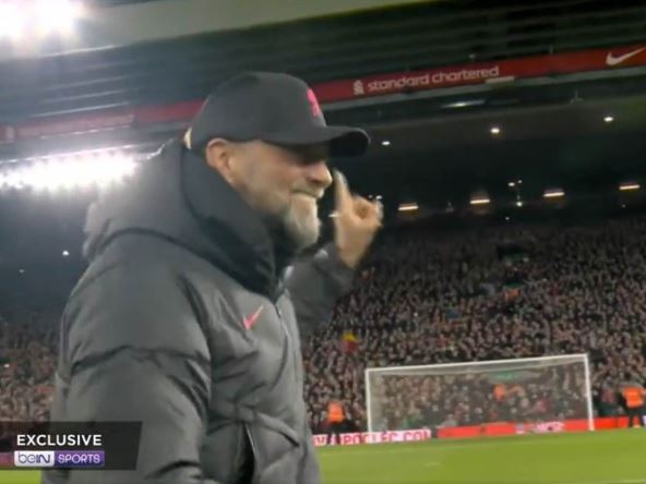 Posle utakmice, Klop je došao do čuvenog "Kopa", gde tradicionalno slavi pobedu gestom pesnicom kojom udara kroz vazduh. Ovog puta, to nije hteo da uradi, da bilo ko ne bi pomislio da tako ponižava Mančester junajted. Navijači Liverpula su ga čekali na tribini i zvali da slavi, a on je podigao kažiprst i uz osmeh odbio taj poziv. Pogledajte tu scenu: