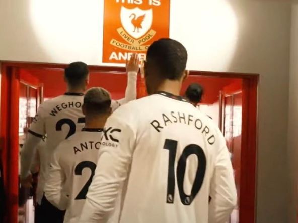 U pitanju je tabla koja se nalazi na zidu pred izlazan na teren "Enfilda", a koju obično diraju igrači Liverpula, pa je bilo neobično videti zašto se Vut Vehorst odlučio na ovaj potez.
