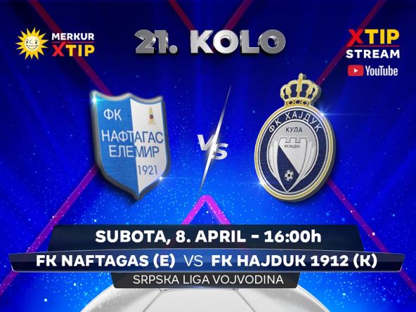 U subotu, 8. aprila od 16:00 časova, uživo, samo putem Xtip Stream-a na Youtube kanaluMerkurXtip-a pratite derbi meč Srpske lige – grupa Vojvodina, između Naftagasa iz Elemira i Hajduka 1912 iz Kule.