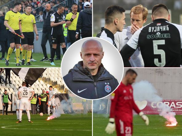 Počeo je ovaj meč u isto vreme kao i susret TSC-a i Voždovca na "krovu", a dok je tim iz Bačke Topole overio drugo mesto na tabeli, duel na Banovom Brdu je prekinut. Navijači Partizana su ubacivali baklje u teren i nakon četvrtog upozorenja sudije meč je u 18. minutu prekinut. Sudija je naložio igračima da se vrate u svlačionice, a tribina je ispražnjena nakon tuče "grobara" sa policijom. Čim je meč nastavljen stolice su poletele na teren i sudija je ponovo prekinuo utakmicu. Pogledi igrača Partizana su dovoljno govorili o celoj situaciji i na kraju će meč biti završen u sredu.