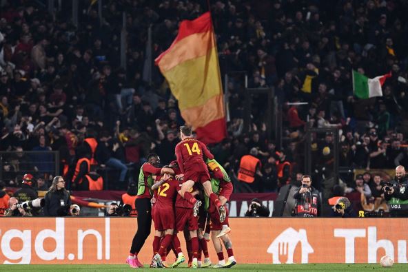 Roma je pobedila Fejenord posle produžetka 4:1 i ukupnim rezultatom 4:2 u dvomeču ušla u polufinale Lige Evrope. Srpski vezista Nemanja Matić bio je jedan od najboljih igrača "vučice" u još jednoj njenoj pobedi u evropskom dvomeču! Prošle godine osvojila je Konferencijsku ligu upravo u finalu protiv Fejenorda, a ove večeri je golovima Leonarda Spinacole u 60. i Paula Dibale u 89. minutu izborila produžetke, onda je prošla među najbolje četiri ekipe golovima Stefana El Šaravija u 101. minutu i Lorenca Pelegrinija u 109! Kakav, nepobediv tim u evro-takmičenjima! Ovo su parovi polufinala, a utakmice su zakazane za 11. i 18. maj: