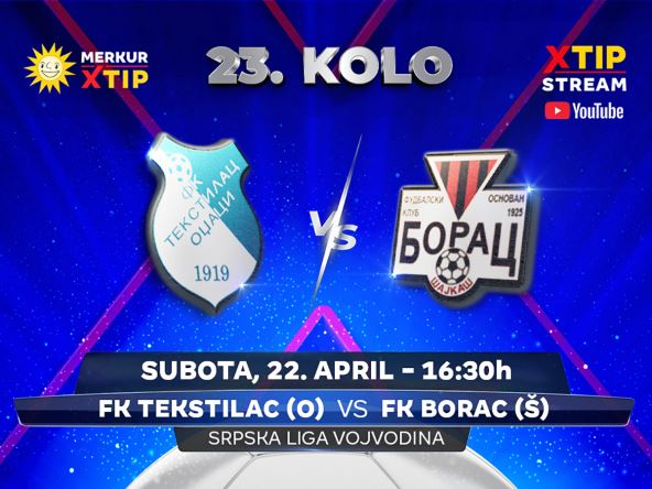 U subotu, 22. aprila od 16:30 časova, uživo, samo putem Xtip Stream-a na Youtube kanalu MerkurXtipa pratite derbi susret Srpske lige – grupa Vojvodina, između Tekstilca iz Odžaka i Borca iz Šajkaša.