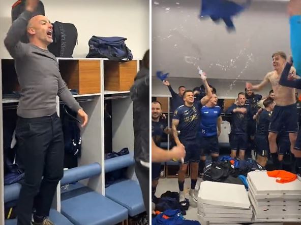 Igrači, stručni štab, pa čak i trener Žarko Lazetić, učestvovali su u proslavi velike pobede, a ovog puta je na repertoaru bila numera "Nešto mi govori" koju peva Stoja. Čini se da su najraspoloženiji u tim trenucima bili Luka Ilić i Ifet Đakovac, sve dok junak pobede Nemanja Petrović nije preuzeo "binu" i postao zvezda proslave. Pogledajte kako je to izgledalo: