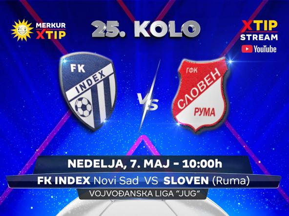 U nedelju, 7. maja od 10:00 časova, uživo, samo putem Xtip Stream-a na Youtube kanalu MerkurXtipa pratite derbi susret Vojvođanske lige – grupa Jug, između novosadskog Indeksa i GFK Sloven iz Rume.
