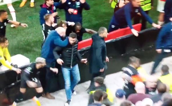 Nakon što je počelo koškanje u sektoru koji je bio rezervisan za porodice igrača Vest Hema, fudbaleri engleskog tima su morali da napuste teren i na tribinama upadnu u fizički obračun sa obezbeđenjem i navijačima. Tom prilikom branili su svoje voljene, a ovakve stvari nikada ne bi trebalo da se događaju na fudbalskim utakmicama - posebno onim u okviru evropskih takmičenja. Pogledajte scene:
