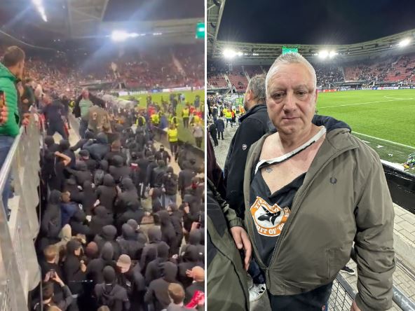Ipak, ovaj veteran sa navijačke tribine Vest Hema imao je prednost u drugim stvarima. Njegov dobar položaj i iskustvo iz uličnih tuča po Engleskoj u nekim drugim vremenima naterali su Holanđane da kapituliraju pred njegovim pesnicama. Pogledajte kako je to izgledalo: