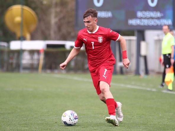 Kadetska (U-17) reprezentacija Srbije pobedila je Italiju 2:0 u 2. kolu Evropskog prvenstva i tako je sačuvala šansu da se plasira u sledeću rundu. Golove za "orliće" postigli su Andrija Maksimović u 39. minutu i Mihajlo Cvetković (na slici) u 59. Izabranici Aleksandra Lukovića su nakon poraza od Slovenije u prvom kolu (2:4) sada treći na tabeli i imaju tri boda, kao i drugoplasirani Slovenci, koji su u drugom kolu izgubili od Španije 1:3. To znači da će naš tim u sredu 24. maja protiv Španije u gradu Budaeršu tražiti prolaz i bar bod, koji bi mogao da bude dovoljan ako Italija pobedi Sloveniju. Posle dva kola "azurini" su jedini bez boda u Grupi B, iz koje će dve ekipe proći u sledeću rundu.