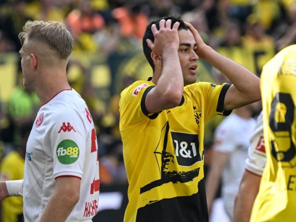 Košmaran dan za Borusiju počeo je u 15. minutu susreta kada je Hanše-Olsen pogodio za prednost Majnca, nastavio se kada je Sebastijan Ale četiri minuta kasnije propustio priliku da izjednači sa bele tačke, a dodatan šok bio je drugi gol gostiju. Onisivo je u 24. minutu postigao drugi gol na meču i poručio domaćima da imaju nešto više od sat vremena da se preokretom domognu titule. Nisu uspeli...