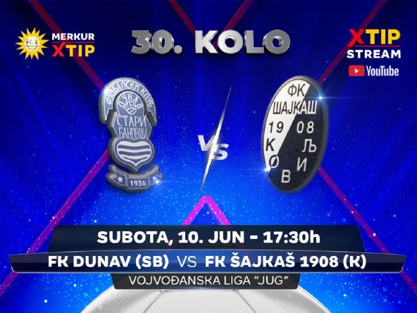 U subota, 10. jun od 17:30 časova, uživo, samo putem Xtip Stream-a na YouTube kanalu MerkurXtipa pratite meč Vojvođanske lige – grupa Jug, između Dunava iz Starih Banovaca i Šajkaša 1908 iz Kovilja.