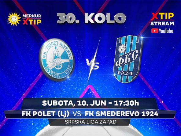 U subotu, 10. juna od 17:30 časova, uživo, samo putem Xtip Stream-a na Youtube kanalu MerkurXtipa pratite susret Srpske lige – grupa Zapad, između Poleta iz Ljubića i Smedereva 1924.