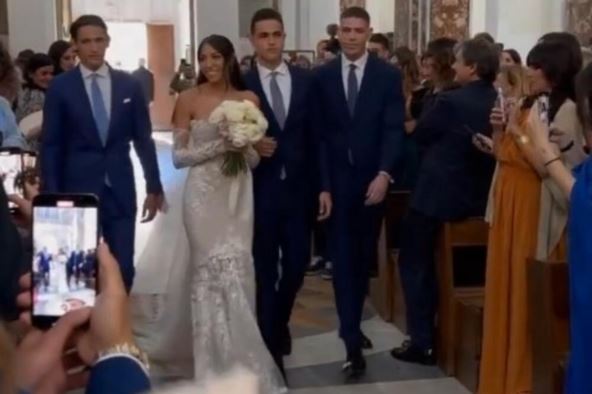 Do oltara su je ispratila braća Miroslav, Dušan i Nikolas, a mlada je izabrala venčanicu u čijoj kreaciji je i sama učestvovala. Što se Alesandra tiče, on je ponikao u Bariju, igrao je i za Juventus, Padovu, Prodenone, Đenovu i Benevento. Prošao je sve mlađe kategorije reprezentacije Italije, ali nije zaigrao u seniorskoj konkurenciji. Pogledajte detalje sa svadbe: