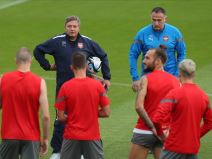 Selektor Bugarske Mladen Krstajić, legendarni as srpskog fudbala i naš bivši selektor, prijateljski i srdačno dočekao je delegaciju Fudbalskog saveza Srbije. Zagrlio se nekadašnji štoper "orlova" sa predsednikom Saveza Draganom Džajićem, potpredsednikom Nenadom Bjekovićem, sa kojim je blisko sarađivao i za vreme zajedničkih dana u Partizanu, a naravno da je posebno prisan bio pozdrav sa selektorom Draganom Stojkovićem, sa kojim je igrao i u reprezentaciji.