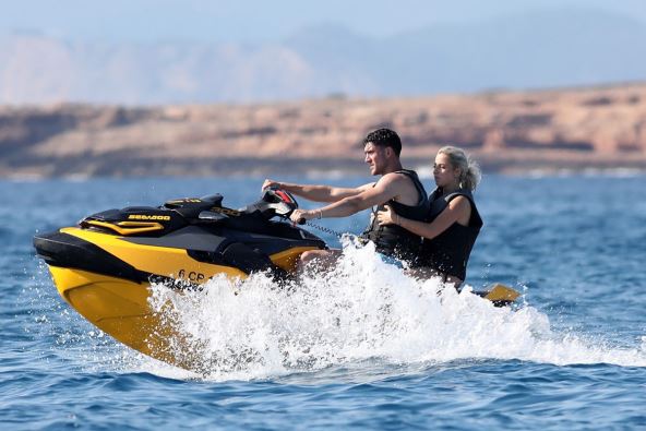 Vlahović joj je pomagao da se popne na jahtu na kojoj su boravili, potom je i provozao ski-skuterom, što nije promaklo fotografima koji u ovom španskom letovalištu često "pecaju" fudbalere i njihove bolje polovine. Prethodno je Vlahović odmarao u Grčkoj sa saigračem Federikom Gatijem iz Juventusa, kao i sa engleskim reprezentativcem Džudom Belingemom, inače novim fudbalerom madridskog Reala.