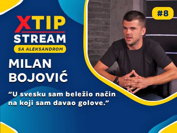 U 8. epizodi Xtip Stream Emisije gost je bio Milan Bojović, rasni centarfor sa bogatom domaćom, ali i internacionalnom karijerom koja traje već 18 godina. Obećavao je Bojović već kao klinac i iz rodnih Lučana otišao u Partizan za koji je potpisao prvi profesionalni ugovor, ali je tri godine proveo na pozajmicama u Radnički, Srem i Teleoptik, da bi usledila selidba u Čukarički. Posle dve sezone na „Brdu“, proveo je dve u Jagodini, pa jednu u novosadskoj Vojvodini. Tada se karijera preselila van granica Srbije, najpre u Grčku gde je nastupao za Panetolikos i Larisu, uz mali izlet u Izrael i klub Bnei Sahin. Jedna dobra sezona u Mladosti iz Lučana kada je u 26 mečeva postigao 16 golova preporučila ga je za novi odlazak „napolje“ i to u Kazahstan gde je nastupao za Kajzar i Žetisu, a 2019. godine vratio se u Mladost i u svoje Lučane iz kojih je krenuo na fudbalski put.