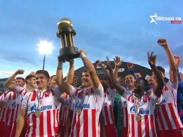 Fudbaleri Crvene zvezde će u četvrtak uveče doputovati u Beograd, a tom prilikom će doneti i trofej koji su osvojili. Njega su nakon meča podigli najmlađi prvotimci - Jovan Šljivić i Jovan Mijatović, dečaci rođeni 2005. godine. Verovatno će njima dvojici biti povereno i da brinu o njemu na putu do klupskog muzeja, što će sa zadovoljstvom prihvatiti.