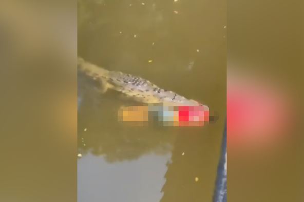 UPOZORENJE: Snimak na kome se vidi krokodil dok u čeljustima drži telo fudbalera je uznemirujući i unapred napominjemo da nije za one sa slabijim stomakom.