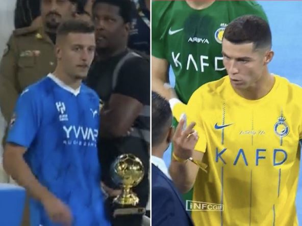 Kamere su uhvatile momenat kako Portugalac gestikulira ljudima u svojoj blizini i diže dva prsta kao aluziju na to da je dao dva gola u finalu i doneo titulu Al-Nasru. Nije očigledno mogao da se pomiri sa tim da je jedna od nagrada otišla u ruke nekog drugog igrača. Nije Sergej preterano slavio zbog priznanja koje je dobio pošto je njegov tim poražen u finalu.