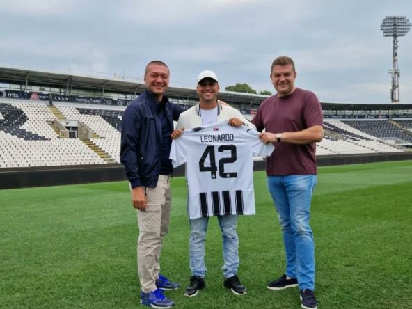 Brazilski napadač Leonardo (31) ponovo je u Beogradu i ponovo je u Partizanu. Ovog puta samo u prijateljskoj poseti, ljubimac Grobara pozdravio se sa nekadašnjim sportskim direktorom crno-belih Ivicom Ilievim i sa Milošem Vazurom, generalnim direktorom crno-belih. Oni su mu uručili dres na terenu stadiona u Humskoj, gde je Brazilac ušao u srce Grobarima u sezoni 2016/16