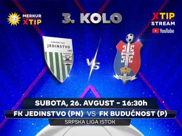 U subotu, 26. avgusta od 16:30 časova, uživo, samo putem Xtip Stream-a na YouTube kanalu MerkurXtip-a pratite susret Srpske lige – grupa Istok, između Jedinstva iz Paraćina i Budućnosti iz Popovca.