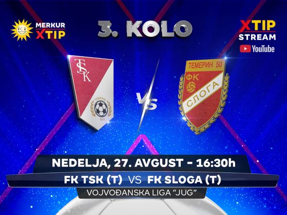 U nedelju, 27. avgusta od 16:30 časova, uživo, samo putem Xtip Stream-a na YouTube kanalu MerkurXtip-a pratite meč Vojvođanske lige – grupa Jug, a sastaju se komšije iz Temerina, TSK i Sloga.