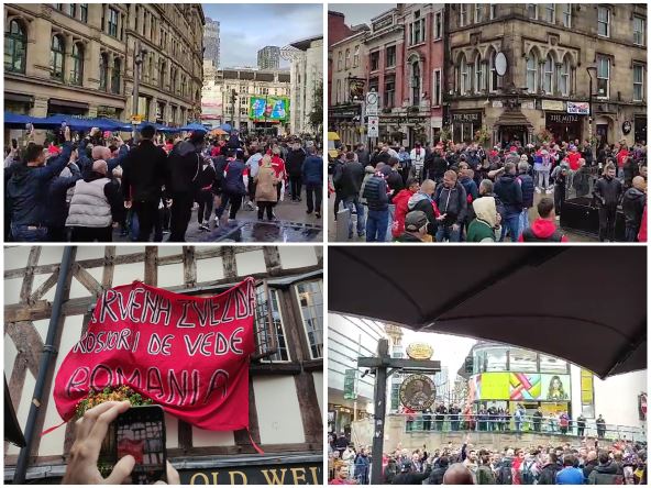 Navijači Crvene zvezde u velikoj grupi idu ka stadionu "Itihad" u Mančesteru, gde će od 21.00 igrati Mančester siti i Crvena zvezda. Reporter MONDA bio je u centru tog engleskog grada kada su pristalice crveno-belih u dugačkoj koloni krenule na utakmicu Lige šampiona, u koju je tim sa "Marakane" ušao prvi put direktno.