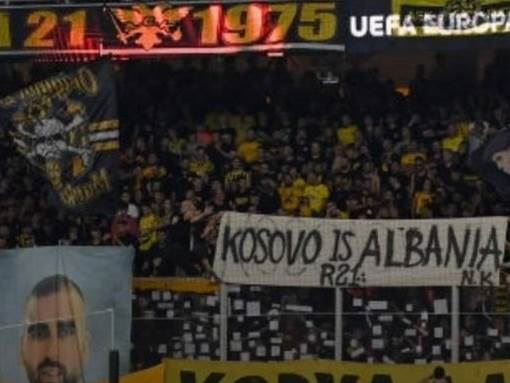 Pravi skandal se desio kada se na meču AEK-a i Ajaksa u Atini pojavio transparent na kome je pisalo "Kosovo je Albanija". Pogotovo je to bilo šokantno kada se zna da su u prošlosti navijači AEK-a i sam klub imali sjajan odnos sa Srbima i Srbijom i čak je AEK stigao u Beograd tokom NATO bombardovanja 1999. godine.