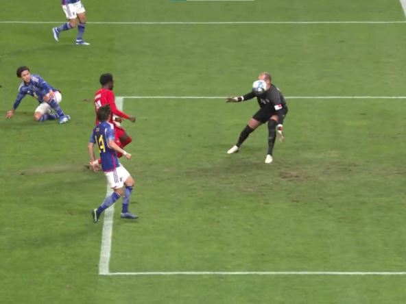 Igrao se 40. minuti meča kada je Alfonso Dejvis duplirao prednost Japanaca - nespretno je reagovao u kaznenom prostoru i loptu koja je nezgodno odskočila baš ispred njegove noge poslao je pravo u facu Milana Borjana. Kanadski golman srpskog porekla nije stigao nikako da reaguje, a lopta je od njega rikošetirala u praznu mrežu koju nije imao ko da odbrani... Pogledajte kako je to izgledalo: