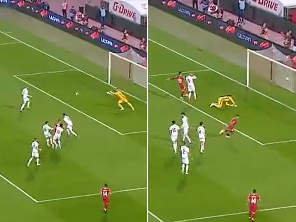 Neverovatni Aleksandar Mitrović! Bombarder iz Smedereva je nastavio da teroriše Crnu Goru i u devetom minutu je dao prvi gol na meču Srbije i Crne Gore! Dobio je pas na desnoj strani, ušao u sredinu šesnaesterca, a onda smo videli evrogol!