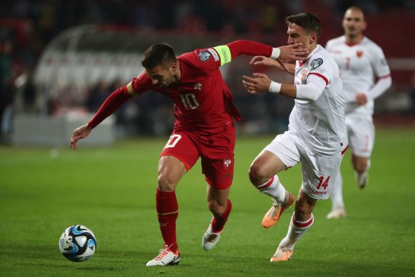 Srbija i Crna Gora igraju važan meč kvalifikacija za EURO 2024, a prvi deo utakmice obeležili su lepi golovi Aleksandra Mitrovića "spoljnom" ispred štopera Stefana Savića, kao i Stevana Jovetića "bombom" ispred "štopera" Dušana Tadića. Da, dobro ste pročitali. To što je kapiten Crne Gore imao pred sobom najkreativnijeg igrača Srbije, a ne nekon štopera, začudilo je stručne komentatore Radio-televizije Srbije, Radeta Bogdanovića i Miroslava Vjetrovića.