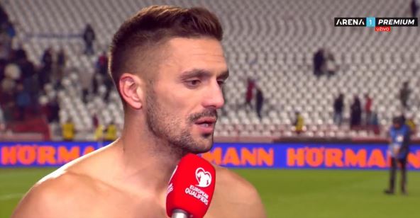 Posle meča, on je tokom izjave za TV Arena sport govorio bez majice i pokazavši mišiće naglasio da tim koji predvodi ima "onu" stvar. "Ova grupa momaka je pokazala šta može i da ima onu stvar", rekao je kapiten Srbije, koji će u 35. godini po svemu sudeći prvi put nastupiti na EURO. I sudeći prema njegovom izgledu, dočekaće ga u sjajnoj fizičkoj formi.