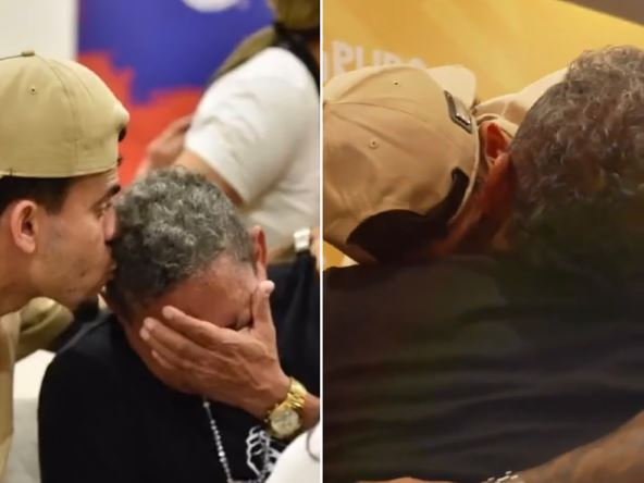 Otputovao je Dijaz u domovinu zbog predstojećeg meča sa Brazilom i tamo ga je već na aerodromu čekao njegov otac Luis Manuel. Čim ga je video, nije mogao da sakrije emocije, ni on ni otac. Obojica su se rasplakali, a sve to zabeležile su kamere i snimak se ubrzo proširio na društvenim mrežama.