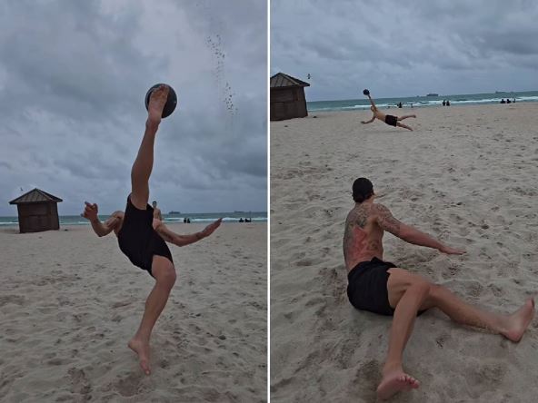 Na svom Instagram profilu Zlatan je podelio snimak sa plaže na kojem se vidi atraktivan potez po kakvim je bio karakterističan dok je profesionalno igrao fudbal. Ibrahimović je izveo makazice, a golman je tek vrhovima prstiju stigao da interveniše i skrene loptu sa putanje. Ovog puta nije bilo gola pa ne možemo reći koliko je precizan bio, ali je impresivno sve ono što je izveo i kasnije pokazao svojim pratiocima.