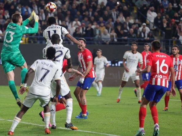 Počelo je skandalom, završilo se spektaklom! Real Madrid i Atletiko Madrid su u Rijadu igrali polufinale Superkupa Španije i na kraju je posle produžetaka i preko 120 minuta fudbala golom Brahima Dijaza je meč završen rezultatom 5:3 za "kraljevski klub". U finišu meča Atletiko je bio bez golmana jer je Jan Oblak jurio u napad da posle kornera i auta postigne gol, ali nisu uspeli igrači Dijega Simeonea da izjednače u poslednjem napadu!