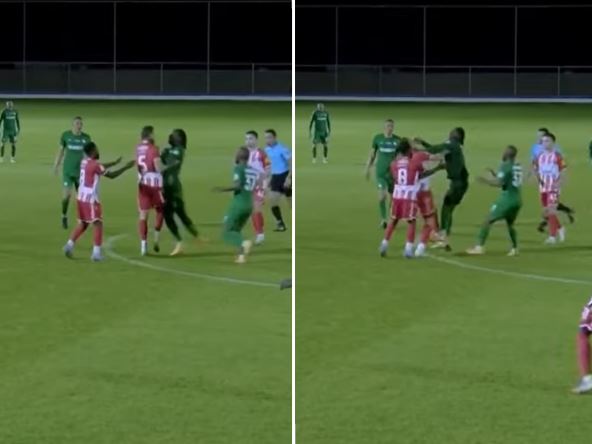 Pogledajte snimak haosa. Sve je počelo kada je fudbaler Boreva, Portugalac Diogo Barbosa, udario defanzivca Crvene zvezde Uroša Spajića po licu posle jednog starta, a onda je vezista srpskog tima Gelor Kanga odmah uskočio da brani saigrača. Posle nekoliko trenutaka haosa, Vladan Milojević, trener Crvene zvezde, pozvao je ekipu kraj klupe i odlučio da meč bude prekinut.