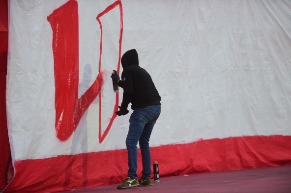Za sve to vreme, jedan navijač je bio na atletskoj stazi, okrenut leđima terenu i sve vreme je ispisivao transparent ispod tribine na kojoj su bile Delije. Slovo po slovo, on je ispisao reč "ideologija" i tako je i tim performansom upotpunio koreografiju kojom su navijači označili početak drugog dela sezone. Pogledajte: