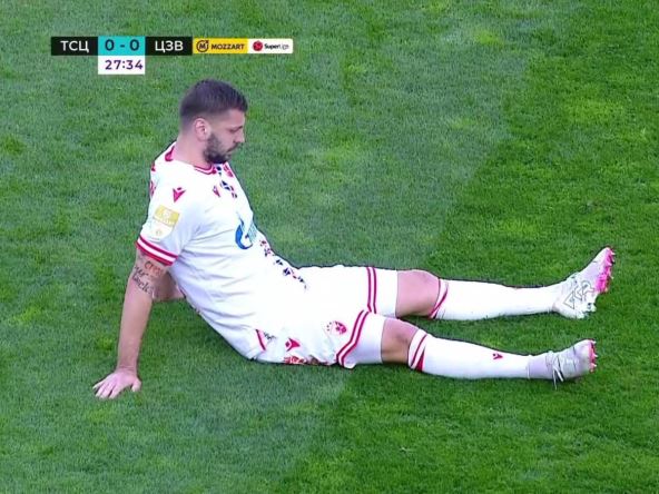 Kapiten Crvene zvezde Aleksandar Dragović seo je na travu i pokazao lekarskoj ekipi da mu je neophodna pomoć, sam je ustao i otišao do njih, vratio se na teren, ali samo minut-dva kasnije je shvatio da ne može da nastavi. Dragović je u 30. minutu napustio teren zbog povrede, nije još jasno čega, a umesto njega će Naser Điga igrati u nastavku protiv TSC-a.